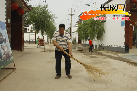 宋志国和群众正在打扫街道卫生。张佩 摄