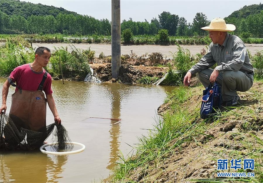 6月12日,魏碧涛(右)在湖北省咸宁赤壁市官田村了解虾稻产业发展情况。新华社发(毕红续 摄)