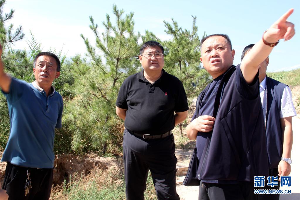 刘伟(左二)在太谷区西曲河旱垣温室调研(2020年9月6日摄)。新华社发