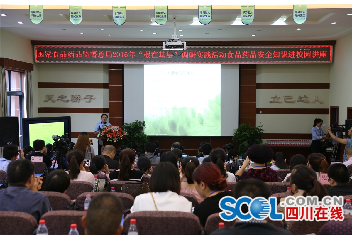 四川在线泸州消息(记者 张婷)“安全用药,从我做起;安全用药,从我家做起。”9月9日上午,国家食品药品监督总局2016年“根在基层”调研实践活动食品药品安全知识进校园讲座在泸州天立国际小学举行,国家食品药品监管总局、商务部、国家质检总局、中医药局中国中医科学院等领导专家为学校的同学和家长们带来了一堂生动有趣的“药品不良反应与安全用药”专题讲座。