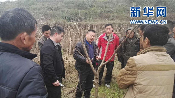 宣讲员在宅吉乡潘桐村开展冬季桃树管理技术培训。新华网发