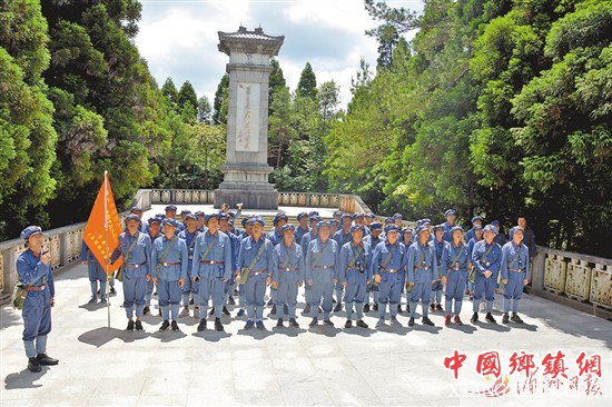 图为培训班学员在黄洋界保卫战胜利纪念碑前接受红色教育。