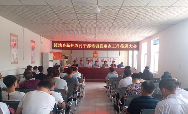 日前,沧县捷地乡在乡政府会议室组织召开新任农村干部培训暨重点工作推进大会。全体乡领导班子、村两委班子、各包村工作组组长共计110人参加会议。