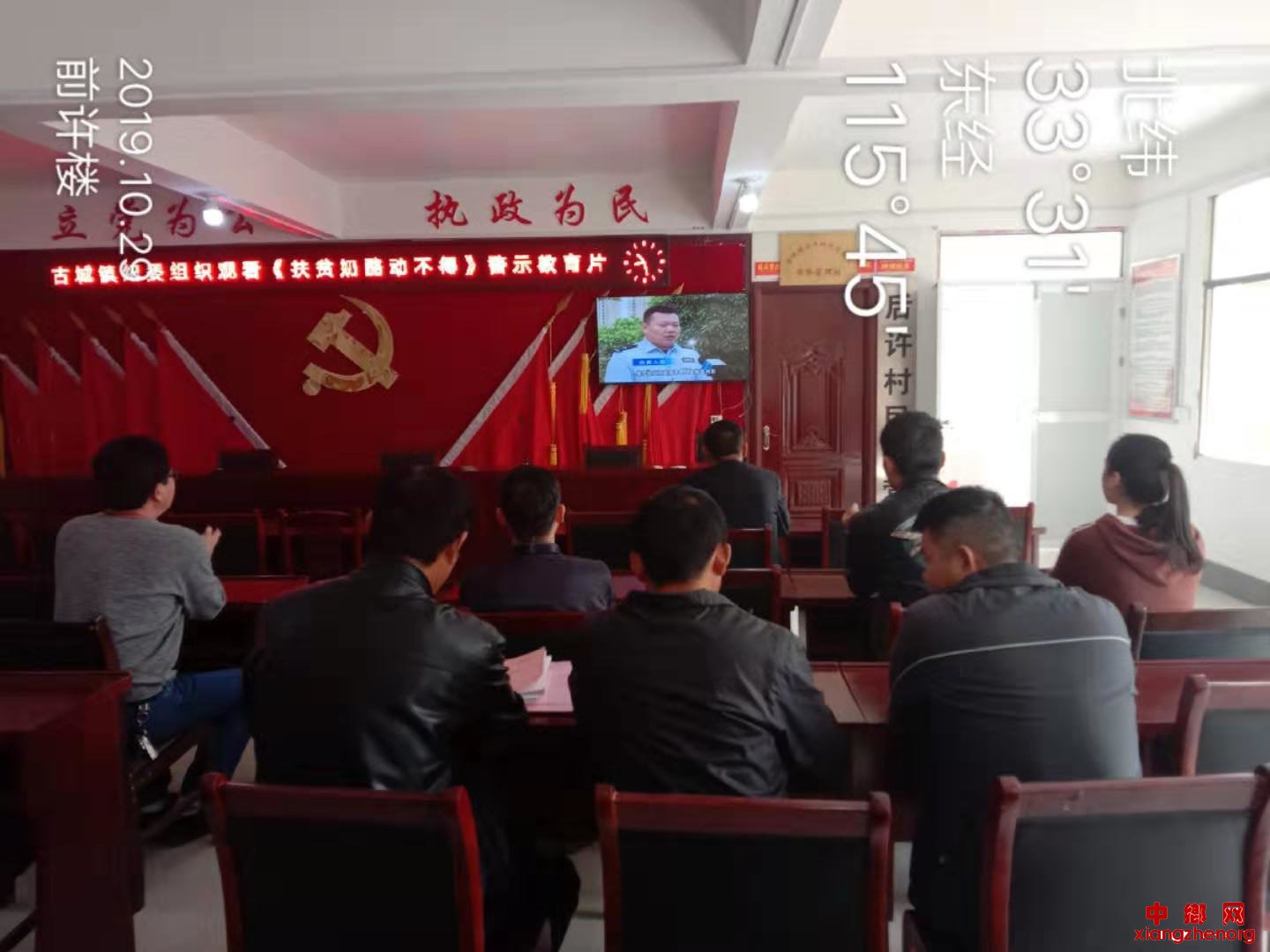 中乡网安徽讯 为进一步加强党风廉政教育,强化反腐倡廉,2019年10月29日,古城镇纪委组织后许行政村村干部观看了警示教育片《扶贫奶酪动不得》,为全体村干部上了一堂生动的廉政党课。