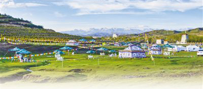 8月10日,游客在甘南州碌曲县尕海镇尕秀村帐篷城度假区游玩。 |
