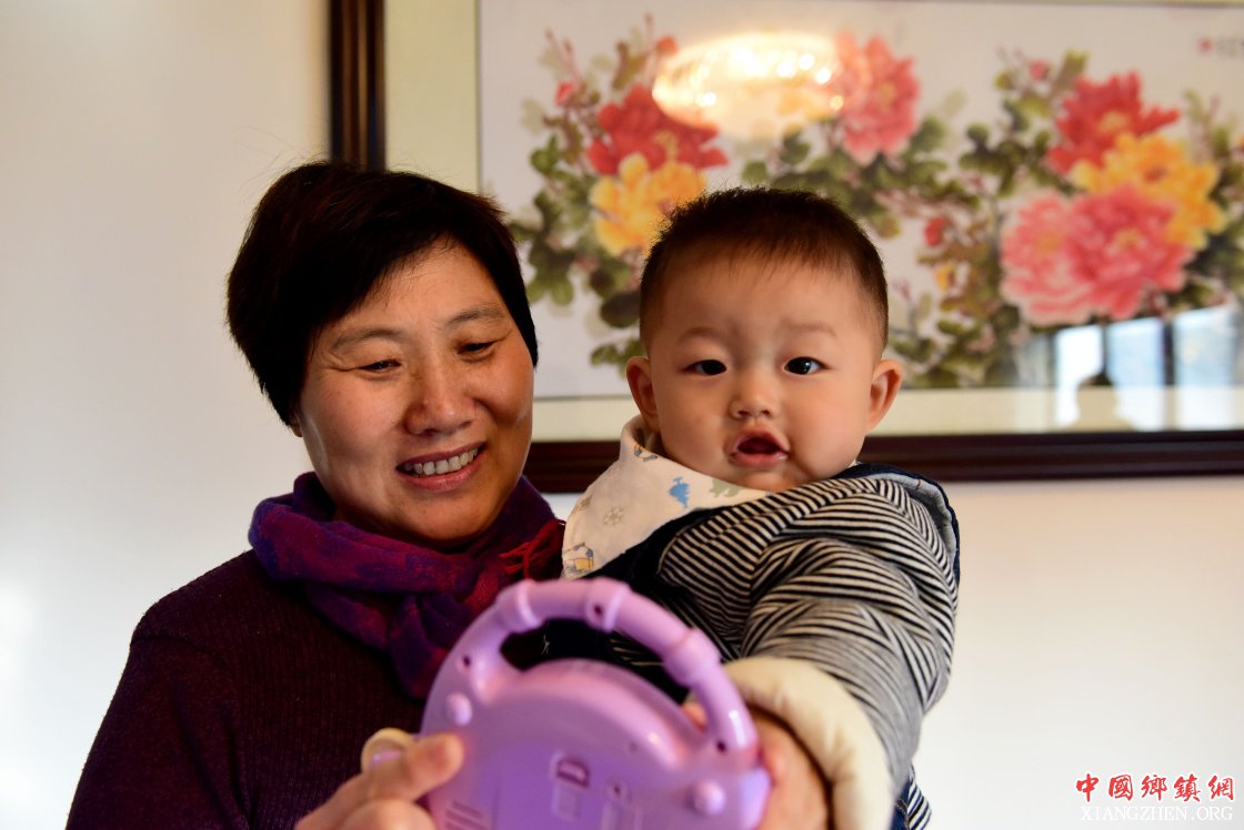 12月4日,河南省新乡县刘庄村民张传兰在家中照看孙子。
