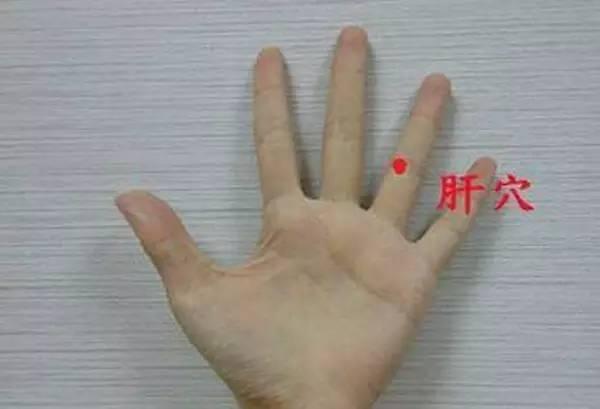 肝穴:位于手掌无名指,就在第二横纹中点;