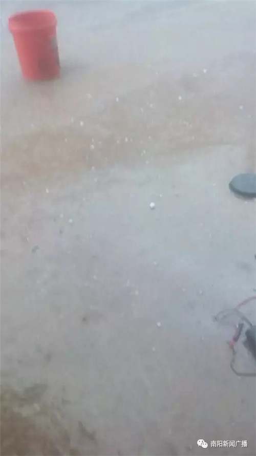 今天下午1点35分左右,唐河县少拜寺镇狂风暴雨并下起了冰雹,持续时间大概一个多小时,据现场网友提供的照片,冰雹有大枣大小,下得很大,很多庄稼已经砸倒砸坏。