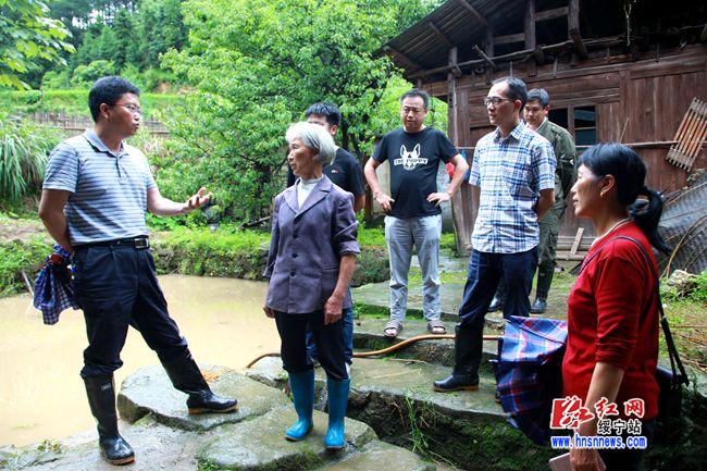 党员干部进村入户调查灾情、安抚灾民情绪。