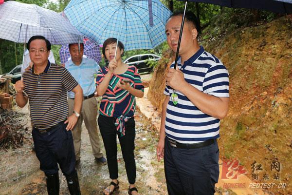 衡东县委副书记、县长徐志毅到杨林、草市指导防汛救灾工作。