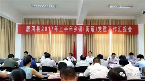 唐河县召开2017年上半年乡镇(街道)党建工作汇报会。县领导李德成、李勇、赵阳、乔国涛、姬欣、黄登科等出席会议。全县22个乡镇(街道)党(工)委书记和组织委员,县委基层党建工作领导小组成员及部分基层“两代表一委员”参加会议。