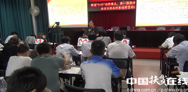 2014年开始,李振生创新“1+11”扶贫培训模式,针对村庄贫困农户实施精准创业帮扶。“1”就是让参训学员在蓉中培训基地集中学习一个月;“11”就是用11个月的时间对学员回村创业进行全方位的跟踪、帮扶和指导,既有当地政府选聘的扶贫创业导师采用“师傅带徒弟”的办法就地就近指导帮扶,又有蓉中培训基地创业导师每季度的跟踪帮扶和远程互联网服务,确保参训学员一年时间内能够让创业计划落地,两年创业发展,三年创业成功。