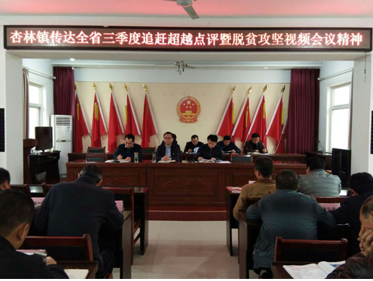 2017年11月13日,杏林镇传达全省第三季度追赶超越点评暨脱贫攻坚视频会议精神,镇全体干部、各村书记、主任、第一书记、驻村工作队参加会议。