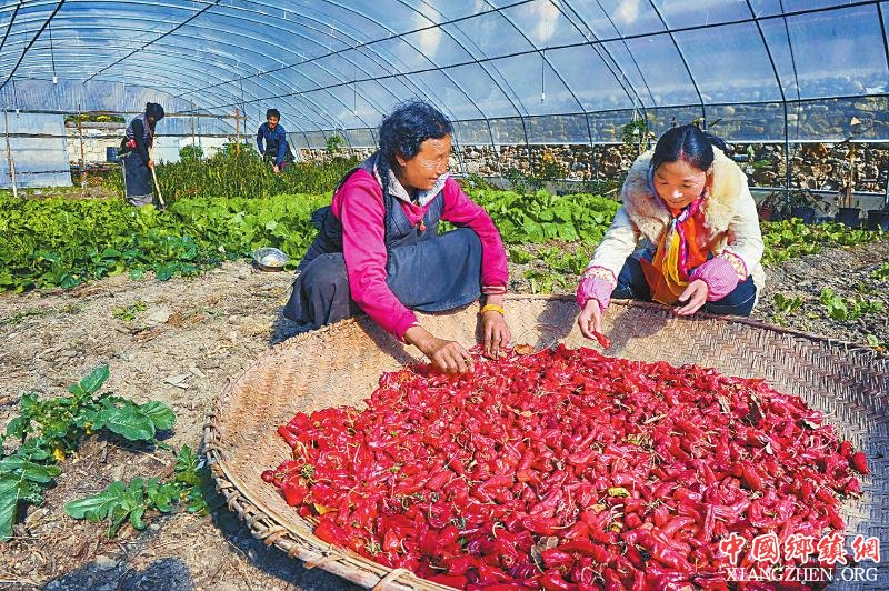 在对口帮扶下,然央村种植的大棚辣椒丰收了。