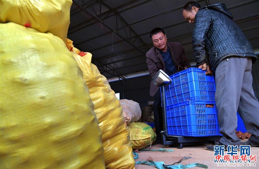 11月14日,在江西省余江县平定乡洪桥村,村民将刚收获的红薯送到专业合作社销售。 近年来,江西省余江县围绕“依托产业突特色产销联动助脱贫”的发展思路,鼓励各乡镇发展优势特色产业,同时依托村级电商平台,解决特色农产品的销售问题。优质红薯是余江县平定乡的著名土特产,当地整合资源,成立专业红薯合作社,形成“农户+合作社+电商”的产业发展模式,合作社牵头与村级电商平台签署销售合同,帮助农户解决销售问题。新华社记者 彭昭之 摄
