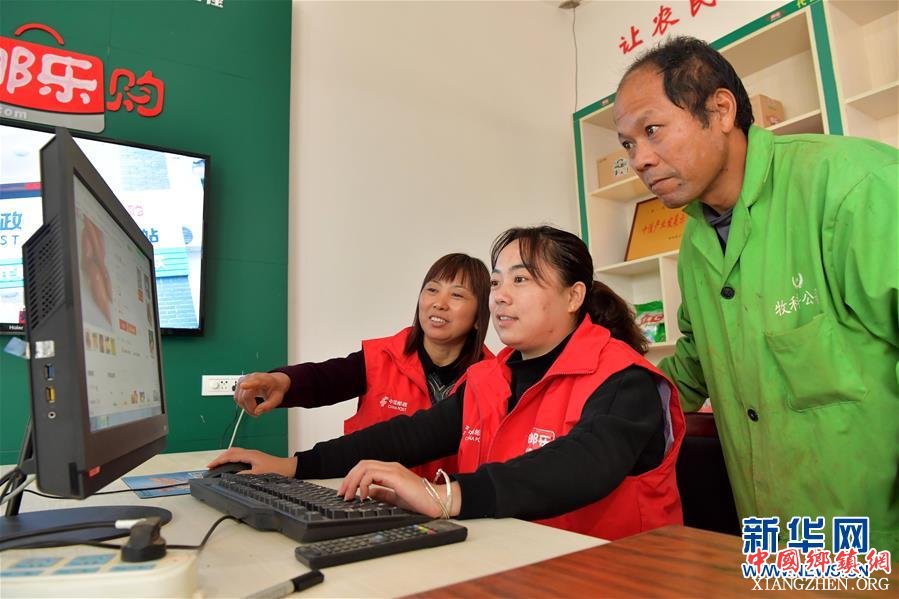 11月14日,在江西省余江县平定乡洪桥村,村民在村级电商服务站查看红薯在网上的销售情况。