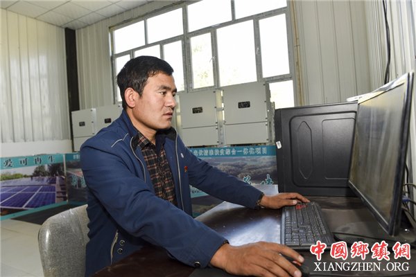 在新疆策勒县策勒镇亚博依村,村委会主任阿卜力孜·阿力木在查看“光伏扶贫”电站的发电量(11月1日摄)。