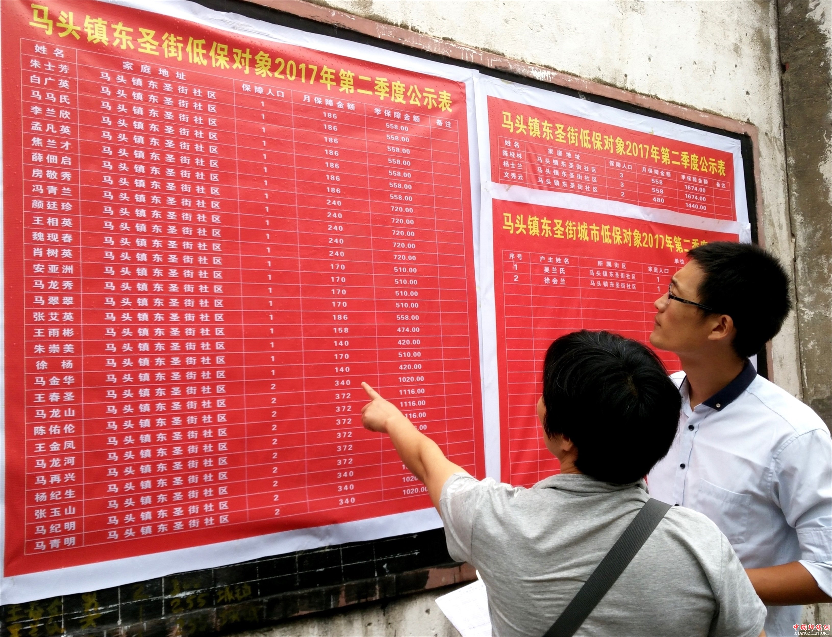 山东省郯城县在“低保”审核工作中,坚持村社区层层把关、逐级申请上报、县乡会同联审、月月张榜公示等强制工作措施,不仅能让符合条件的困难群众享受到应保尽保的惠民政策,而且有力地纯洁了“低保”人群的队伍,促进了精准扶贫工作的开展。(高军 摄影)