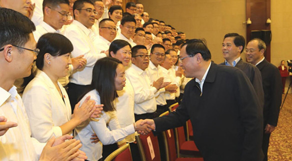 李强和陈豪、阮成发等两地领导看望慰问了援滇驻滇干部人才,为上海市2017年度扶贫攻坚劳动竞赛获奖先进集体、先进个人代表颁奖。周灿/摄