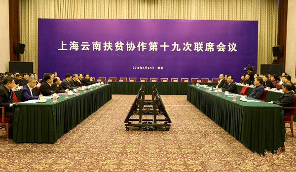 27日,上海云南扶贫协作第十九次联席会议在昆明举行。会议强调,滇沪两地要深入贯彻落实习近平总书记扶贫开发重要战略思想,勠力同心,真抓实干,携手打赢打好精准脱贫攻坚战。