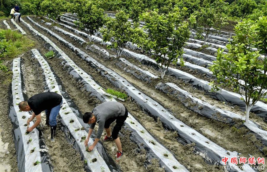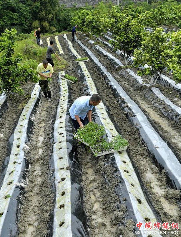 5月3日,湖北宣恩县直机关驻沙道沟镇四道水村精准扶贫工作队队员与村民一起移栽辣椒苗。