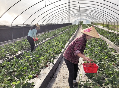 城口县北屏乡太平社区的特色农业试验示范园。农户们在采摘草莓。 上游新闻记者 杨辛玥 摄