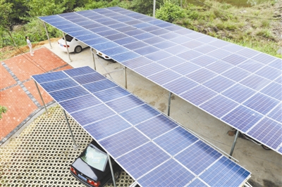 乡政府大院建光伏电站建设不仅节约了耕地,还美化了大院,而且还可为房屋隔热。其中,在大院一角建起的“光伏棚”面积近200平方米,棚底可以停放20多辆车,一举两得。
