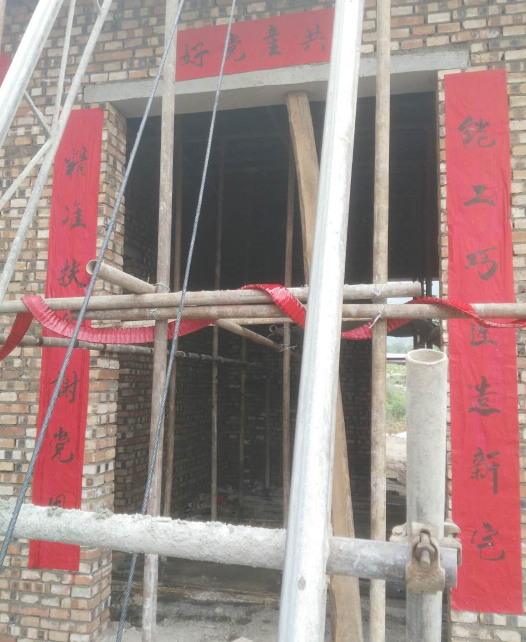 新房上梁顺利结束后,村级专职工作人员段亚宁兴高采烈地念道:“精准扶贫谢党恩,能工巧匠造新房”的对联时,只见贫困户王阶林笑的合不拢嘴,嘴里一直念叨着:“共产党好,真好,要是没有危房改造政策,我真不敢想象自己何时能住上新房……说着说着几度哽咽。岁月在这个男儿脸上留下了些许岁月的痕迹,使他看起来饱经沧桑,但此刻看到村书记、第一书记、包村干部们心里装着自己,千方百计与镇党委政府沟通协调,为自己争取危房政策,帮自己盖上了新房时,内心的激动无法言表,炯炯有神的双眼里散发着对摆脱贫困的坚强决心。