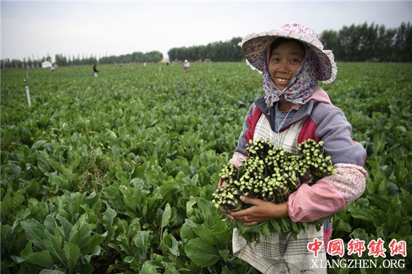 在固原市原州区彭堡镇姚磨村,村民在蔬菜基地收获蔬菜(8月27日摄)。