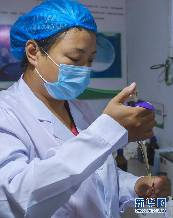 9月13日,安平县方元奶牛养殖专业合作社技术人员在检测出奶质量。新华社记者李晓果摄