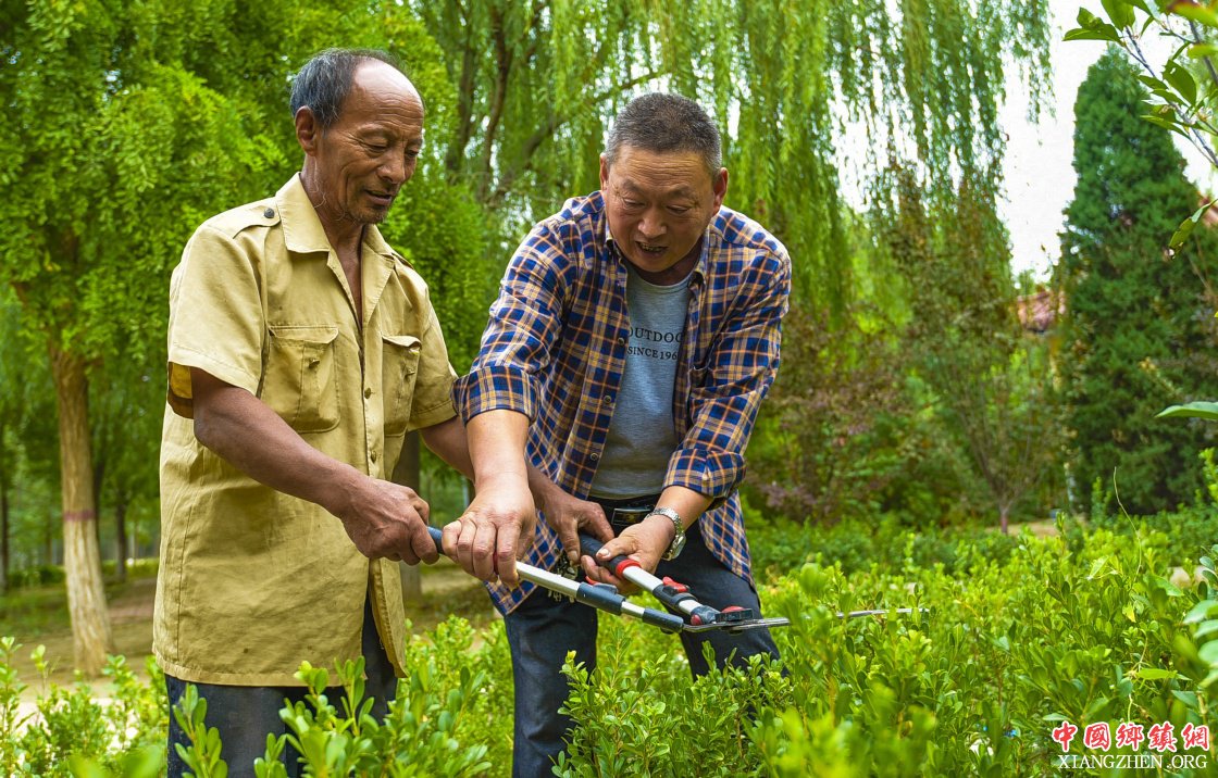 9月26日,在河北省故城县青罕镇南王庄村,农技员指导通过扶贫专岗就业的贫困户修剪绿化植物。