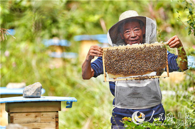 “山那边就是红池坝景区,山上到处都是开花中药,1桶蜂可以产20斤蜂蜜。”渔沙村村党支部书记陶春安对记者说。
