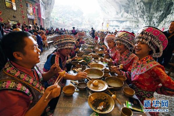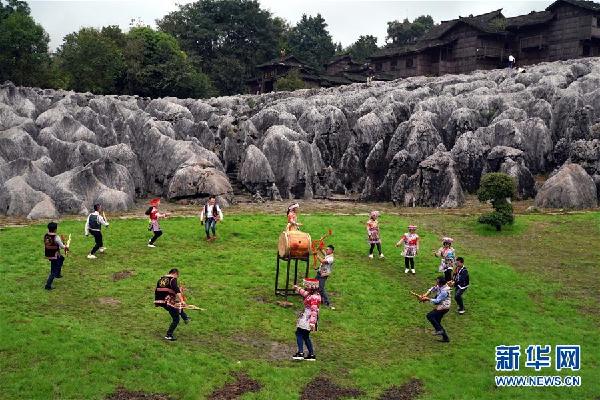 近年来,四川省宜宾市兴文县将旅游产业作为全县精准扶贫和县域经济发展的主导产业。兴文县是一个多民族聚居县,有多项国家级、省级非物质文化遗产,具有浓郁的民族风情。2018年1至9月,兴文县实现旅游综合收入76.23亿元,带动37500人脱贫致富奔小康。新华社记者 宋振平 摄