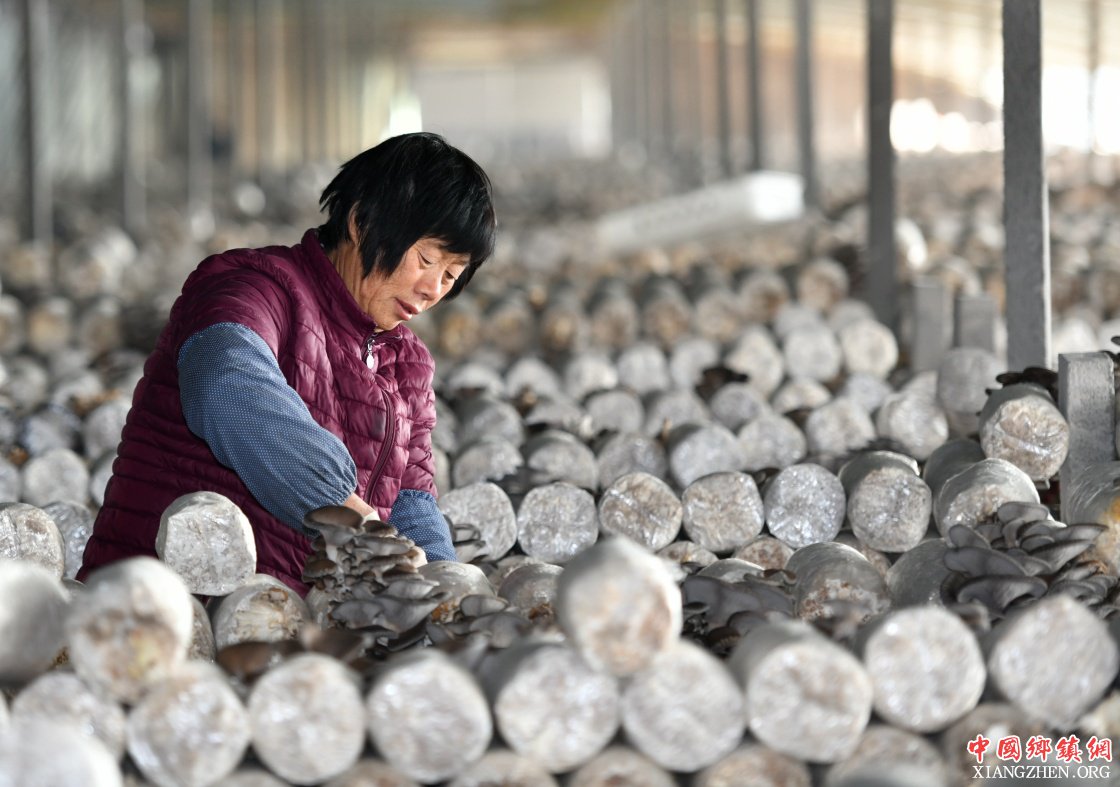 12月18日,山东省高青县花东村村民李雪花在采摘蘑菇。她每天可以获得60元的报酬。