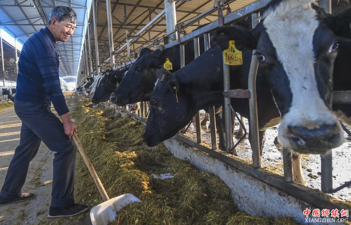 4月24日,在河北省百荣牧业养殖基地,枣强县唐林镇朴庄村村民饲喂扶贫奶牛。 4月24日,河北省枣强县唐林镇李进伯村的农民给葡萄疏果。