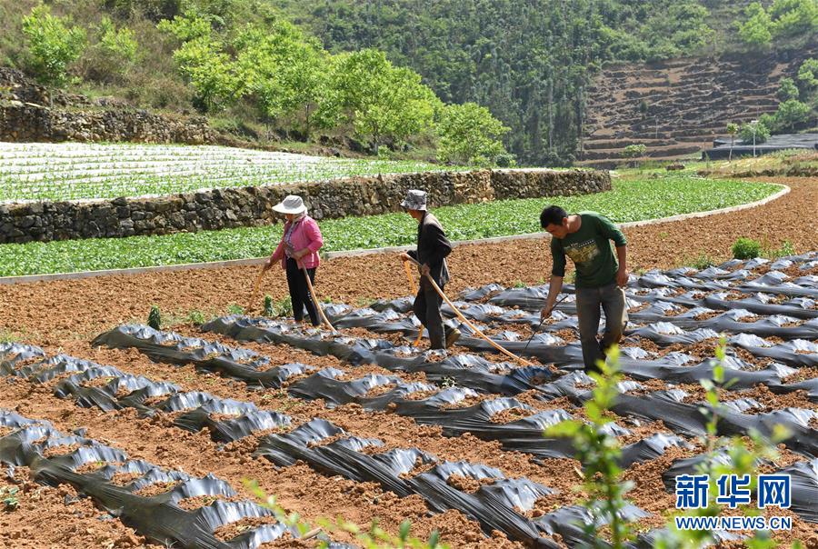 云南西畴县蚌谷乡龙正村农民在管理种植的经济作物(4月17日摄)。新华社记者 杨宗友 摄