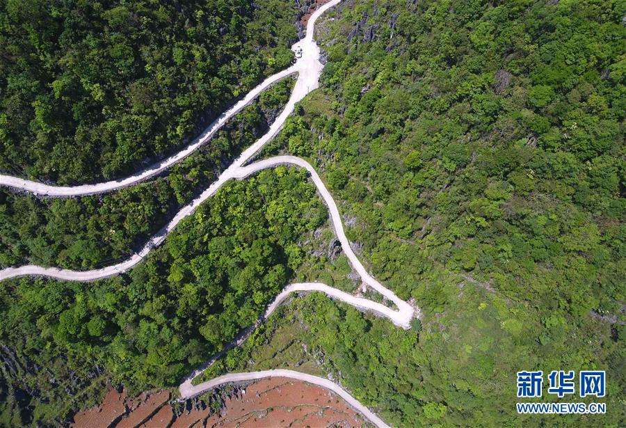这是无人机拍摄的云南西畴县鸡街乡肖家塘村新修通的盘山公路(4月19日摄)。新华社记者 杨宗友 摄
