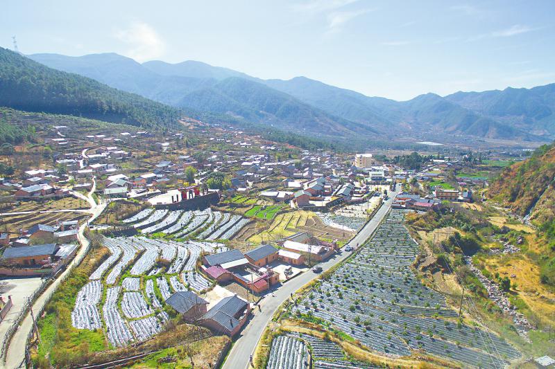 随着旅游扶贫工作深入推进,凉山州西昌市安哈镇已经有50多家彝家乐,村民靠着旅游走上了脱贫致富路。图为安哈镇长板桥村彝家新寨。