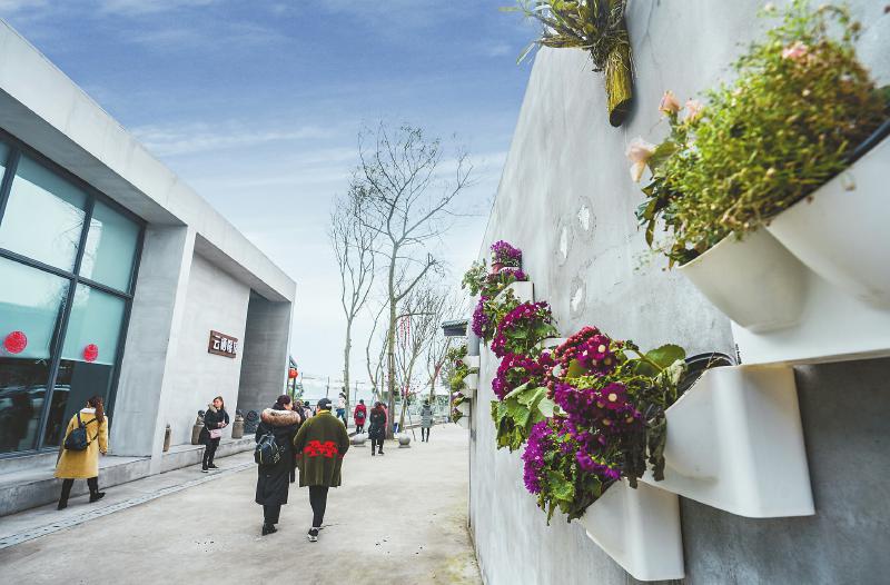 眉山市仁寿县汪洋镇上游村的一家民宿鲜花满墙。