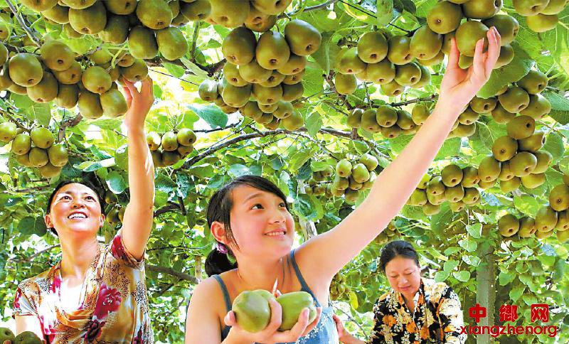 游客正在采摘苍溪红心猕猴桃