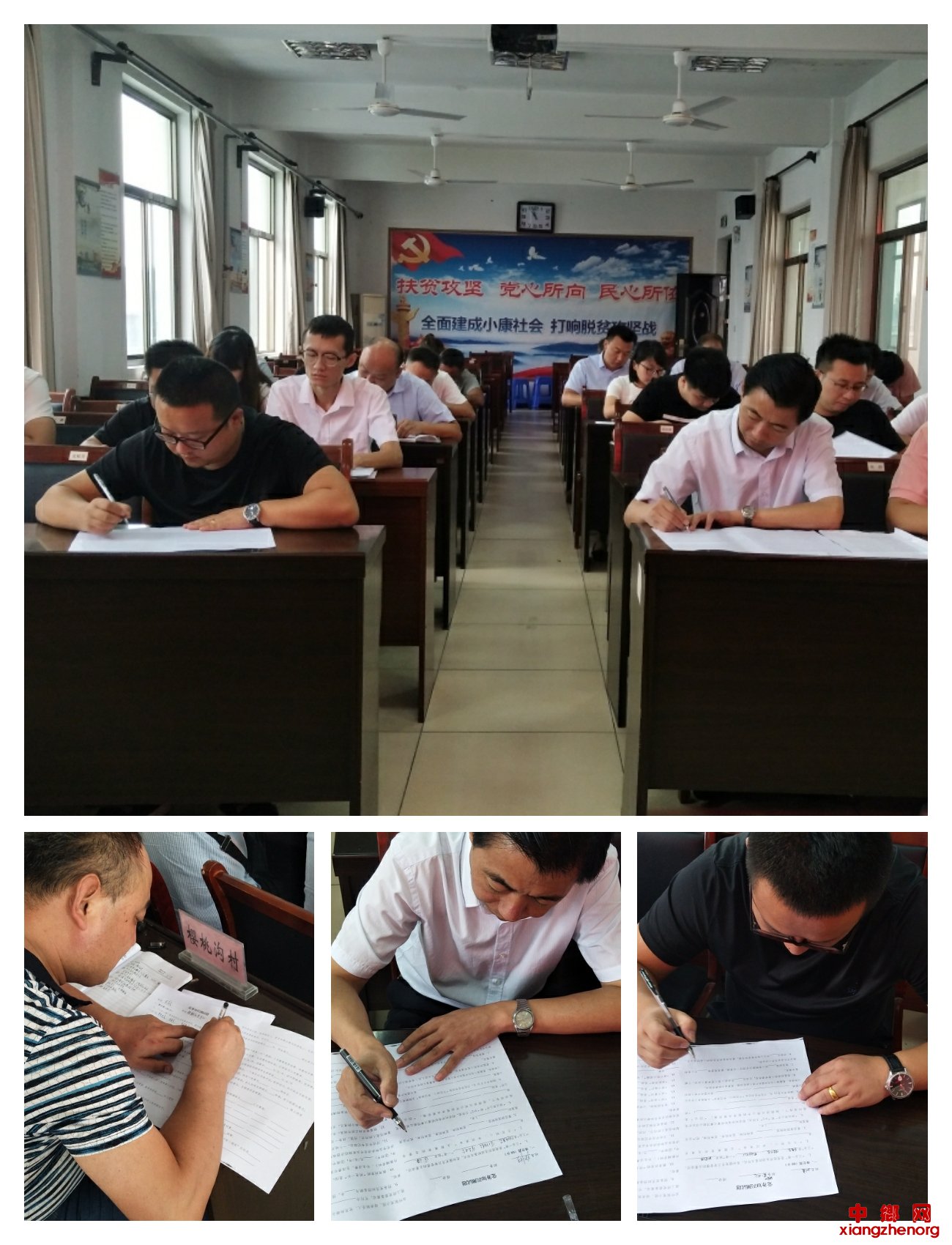 接着,分管脱贫攻坚工作副镇长杨婷从贫困村退出标准,贫困户退出条件、流程,“五支力量”人员组成及职责、第一书记工作职责、六个精准等方面进行现场提问,大家依次回答,现场气氛紧张有序。通过提问,进一步了解了驻村帮扶工作人员对政策的知晓情况以及所包联村是否做到“一口清”。随后,镇党建办、扶贫办干部根据大家汇报情况,有针对性的对抓党建促脱贫、脱贫攻坚相关知识进行了专题培训,传导压力“倒逼学”,及时查漏补缺。培训结束后进行了知识测试,坚决破解驻村帮扶工作人员学习形式主义“顽疾”,确保熟知政策。