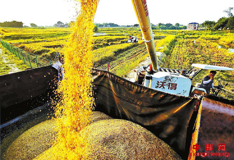 岳池县种粮大户用机器收稻谷。 张启富 摄