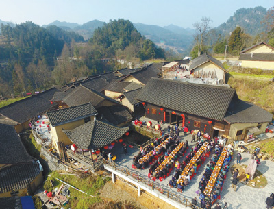 花垣县十八洞村摆起长龙宴欢庆苗年。摄于2019年1月。 新华社记者 薛宇舸摄