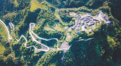 现在的花垣县十八洞村及其进村道路。摄于2019年9月。新华社记者 陈泽国摄