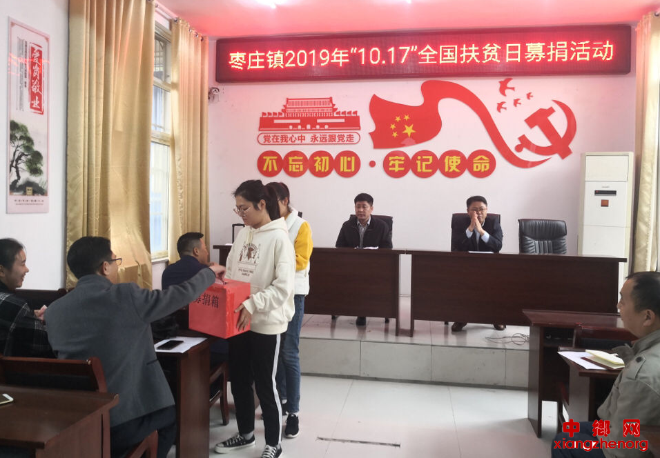 中乡网安徽讯 在全国第6个扶贫日来临之际,安徽省阜阳市颍东区枣庄镇结合庆祝新中国成立70周年,组织开展扶贫日系列活动,动员全社会参与、形成各方合力、聚焦脱贫攻坚,努力引导全社会关注支持扶贫事业,积极参与脱贫攻坚伟大实践,为打赢脱贫攻坚战营造良好社会氛围。为做好2019年“10.17”全国扶贫日募捐活动,10月16日,安徽省阜阳市颍东区枣庄镇率先在镇党政干部中开展了2019年“10.17”全国扶贫日募捐活动。这标志着枣庄镇开展第6个“10.17”全国扶贫日募捐活动已拉开了序幕。