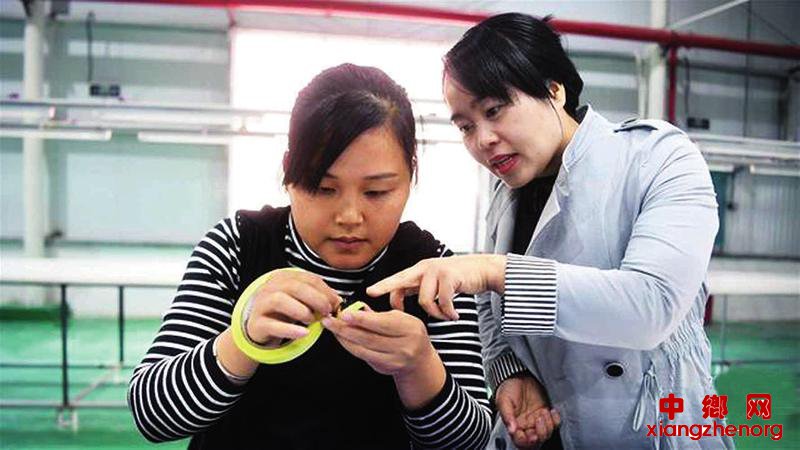 10月18日,在广西三江侗族自治县的一家“扶贫车间”,管理人员(右)在对来自易地扶贫搬迁点的妇女进行实操培训。