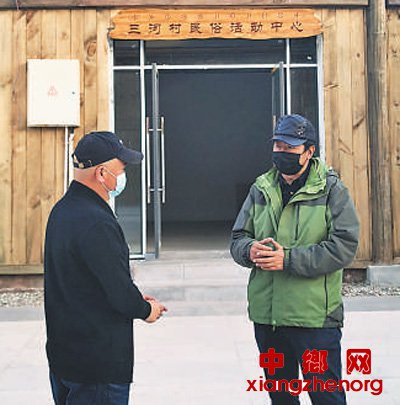 吉色方森(右)与昭觉县住建局局长在商量三河村新村文旅产业发展。 |