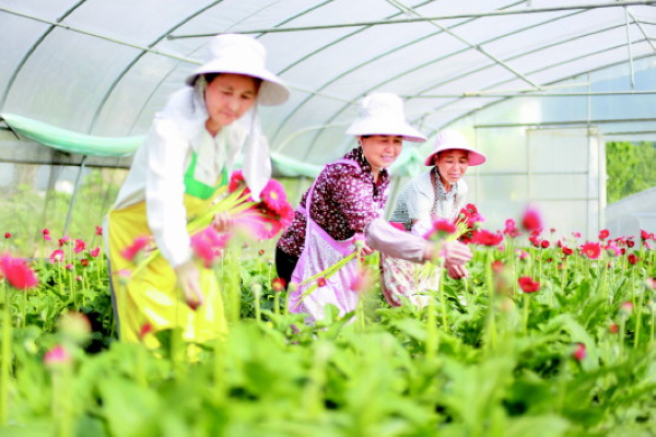 长堰村花卉种植基地经济效益和扶贫效益都十分明显。一个240平方米的大棚,每年可采摘约8万株非洲菊,产值约2.4万元。此外,基地常年用工量逾万个,年发放农民工工资超过170多万元。 周训超 摄(贵景网)