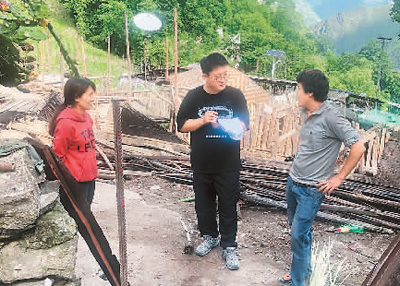 和宇扬(中)与村民家商讨搬迁事宜。 |