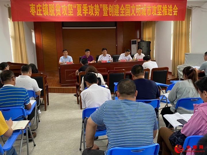 中乡网安徽讯 7月14日下午,安徽省阜阳市颍东区枣庄镇召开脱贫攻坚“夏季攻势”暨创建全国文明城市攻坚推进会。参加会议的有镇全体党政干部、村、居全体两委干部、驻村工作队全体人员、扶贫专干。区政协主席王建和区统计局党组成员刘晓辉到会指导并作重要讲话。会议由镇党委书记刘光辉主持。